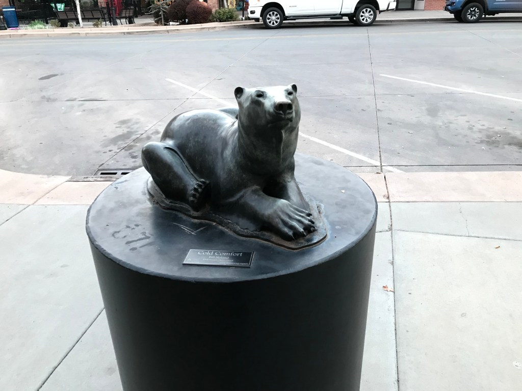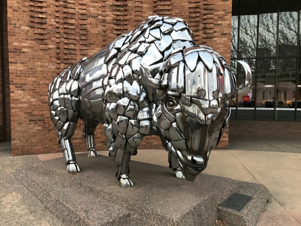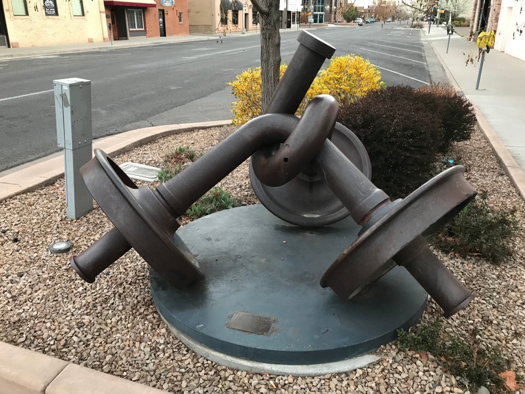 After a good nights sleep, we headed out just after day break. There were some statues listed on the Roadside America website, we had time, so we headed to one art work that was closest to us. Imagine our delight to find that the entire downtown district was full of statuary! We parked nearest to the corner of the metal buffalo (the statue that we had been directed to) and walked only 1 block in all four directions and were treated to all of the pieces included in the slideshow below. There were many more, but we had a few more sites to see in the area, before returning to the road to Nevada.