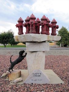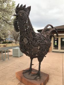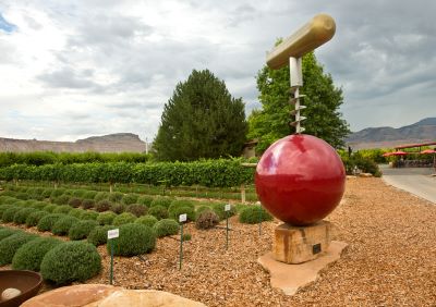 The last post’s slideshow included 2 statues made of scrap metal, a chicken and a horse. They were attributed to downtown Grand Junction, they were in fact located in front of a winery taste room in Palisades. They are included again in the slideshow below, along with “Rusty’s Dream” , a giant corkscrew and a trout fashioned out of license plates. The last 2 were located amongst the various wineries. Just after the slide show I included a stock photo of a large winery showing plenty of crops and buildings, to give you a sense of how this area looks. Not quite sure why I was so fascinated by the closeness of the interstate, which winds around the base of the cliffs shown in the background. It isn’t easy to get to though, it took us quite sometime to navigate back to a road that went through, following strange road signs. It probably isn’t unique, but we thought it odd how the street signs read. “38 3/10 Rd and “G 2/10 Rd”, were just 2 of the names we were running into, no doubt some sort of grid marking, but still unusual to us. We managed to make it back to Interstate 70 and headed west toward Las Vegas, taking us over the incredible terrain of southern Utah. If you want more information on Palisades, go to https://visitpalisade.com, it is worth the read. This is one of the computer issues that I have mentioned, we just don’t have or can’t transfer easily, all of the pictures that we took that morning. The tree in bloom featured in the slideshow was located at the same winery that the scrap metal animal sculptures were. It was the only shot that we have of something in bloom, but EVERYTHING was in bloom. The drive, that early in the morning through the fields, a gentle mist rising over the crops and then all of the delicate flowers in different, , mostly pastel, colors in bloom, created a mystical aura, leaving us in complete awe of mother nature. We had just happened to be lucky enough to accidentally be there during this special time. We could not have planned it, even if we had tried.