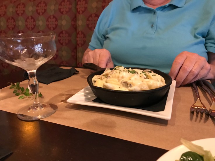 Missy chose the Truffle Mushroom Mac & Cheese as an entrée, I went with the current trend and ordered  the Pan Seared Scallop Tacos.  The most amazing course was the “Crazy Dates” appetizer.