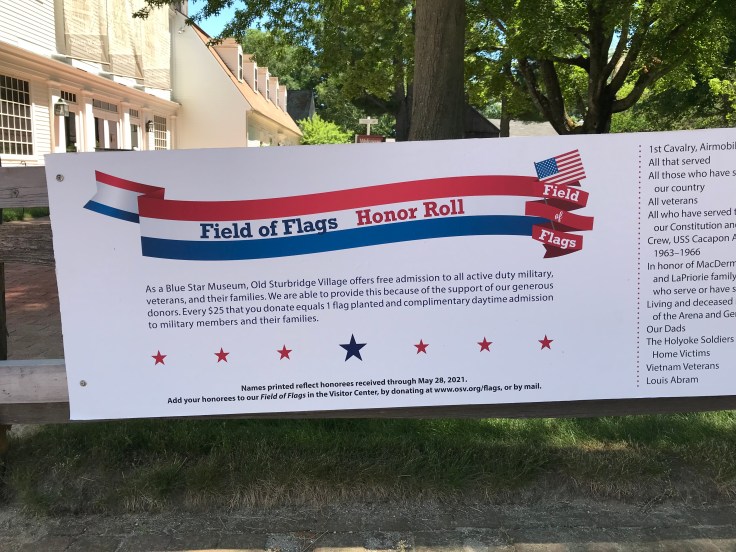 The idea of purchasing a flag for the “Field of Flags”, located on the other side of the entry walkway from the Oliver Wight Tavern, is to honor a persons currently in active service or a veteran and the proceeds sponsor free entry for military members and their families, among other altruistic programs.