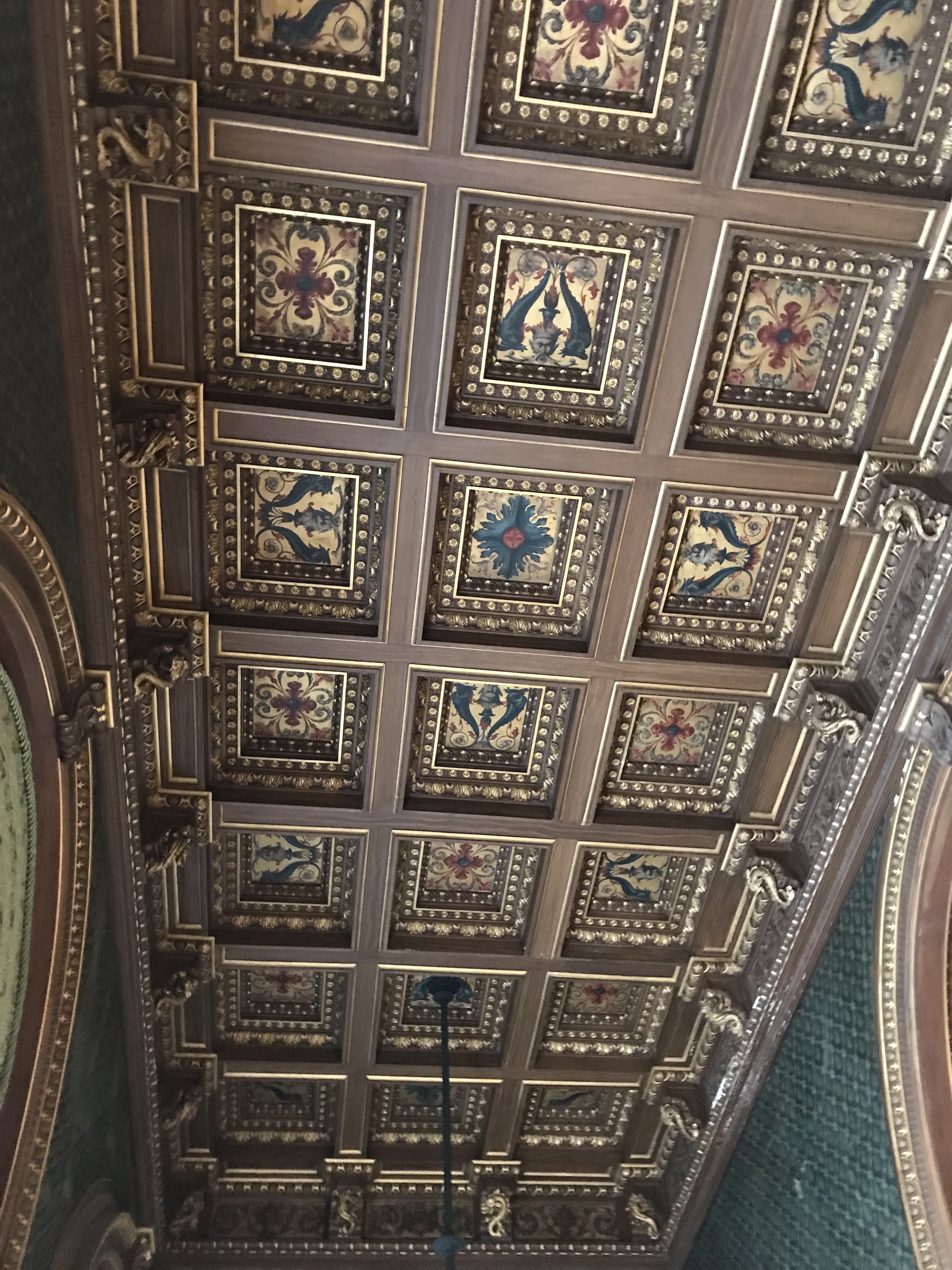 Even the ceilings were opulent and works of art. The green wall in the last picture is, actually, leather and pressed gold!