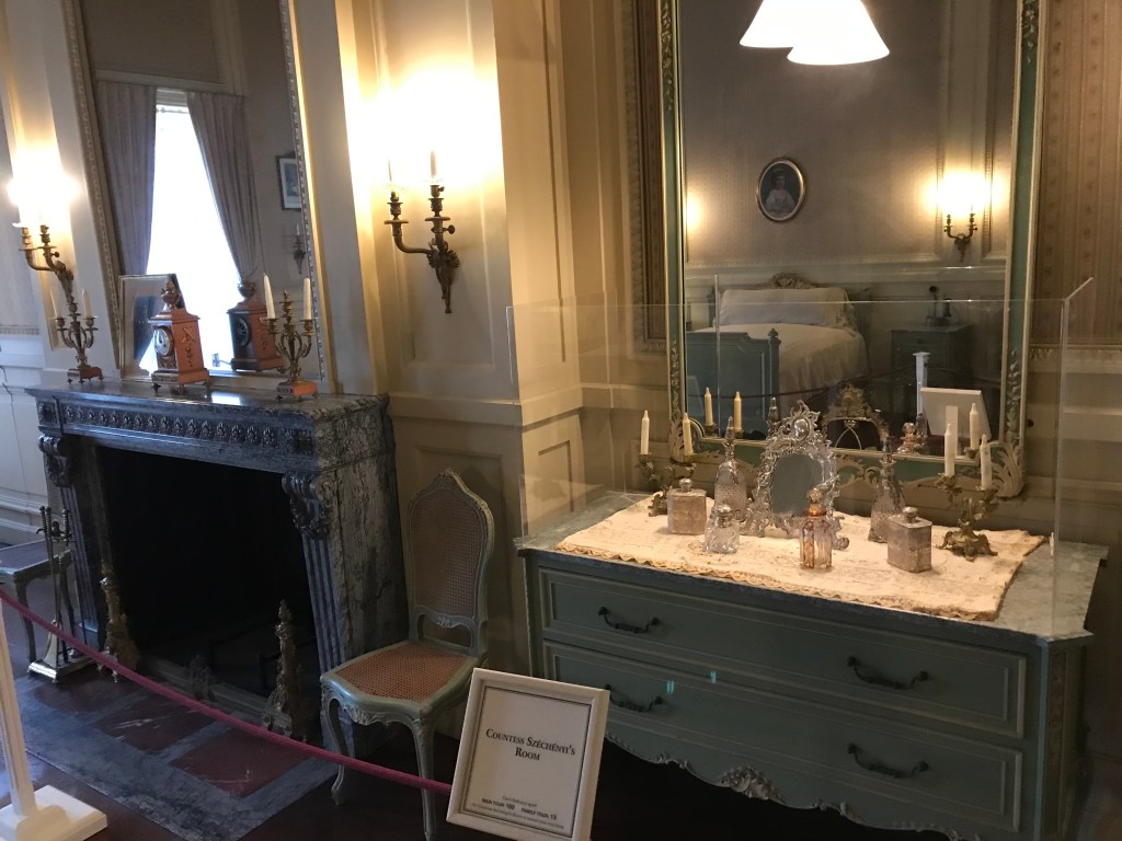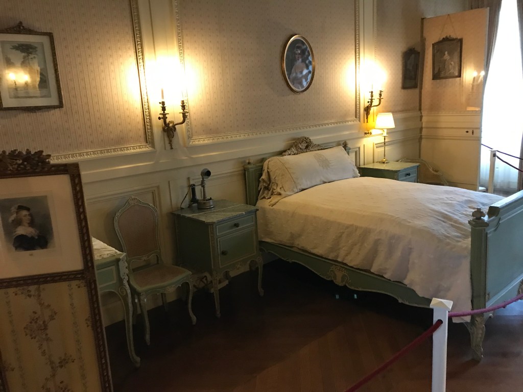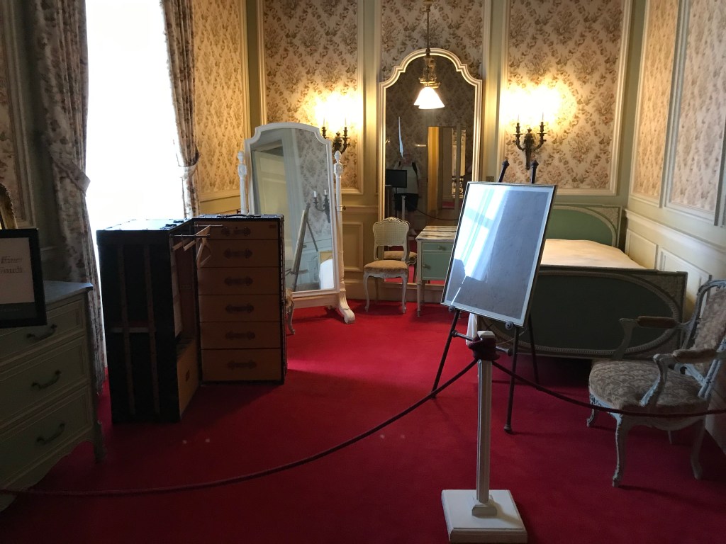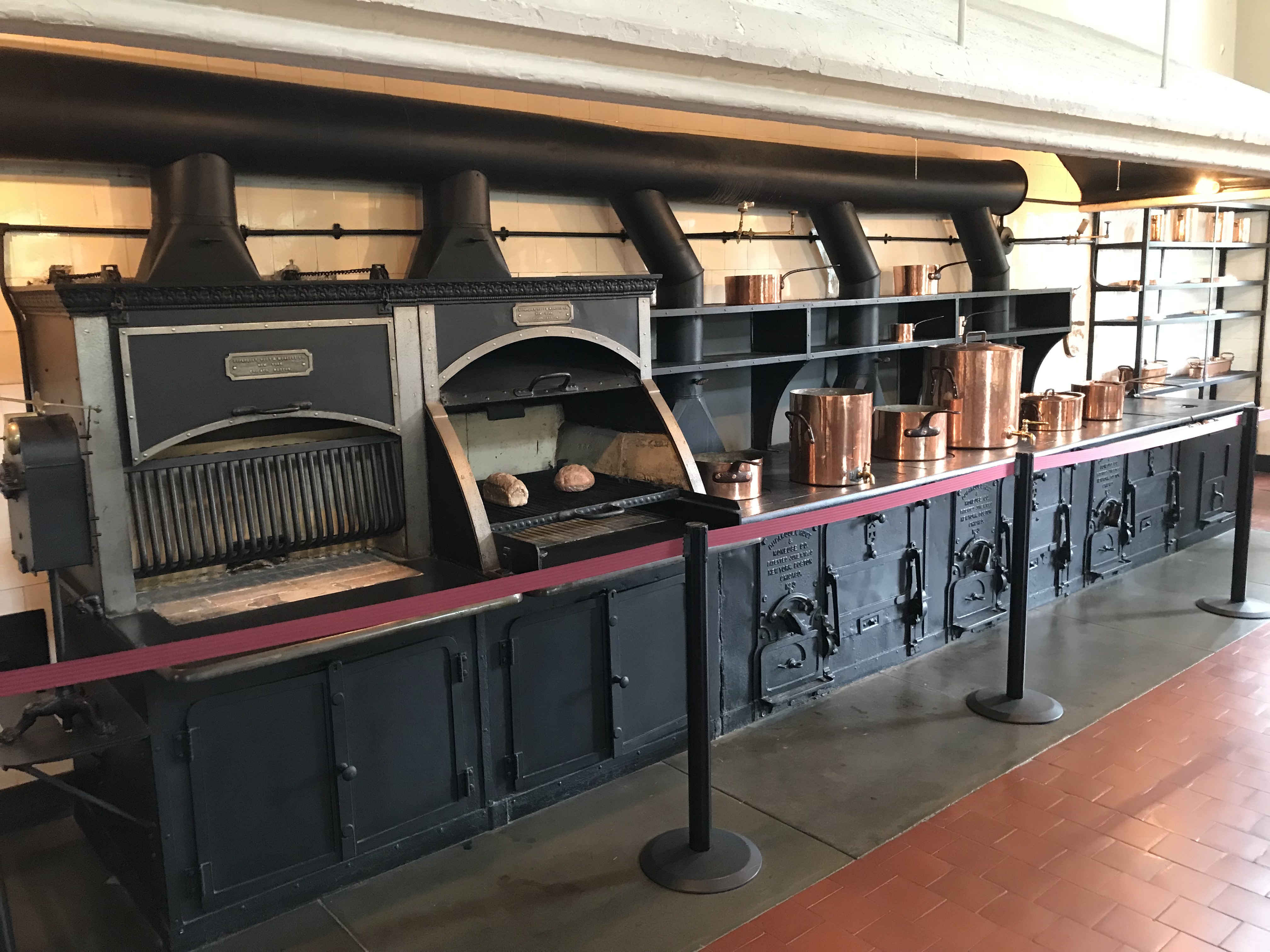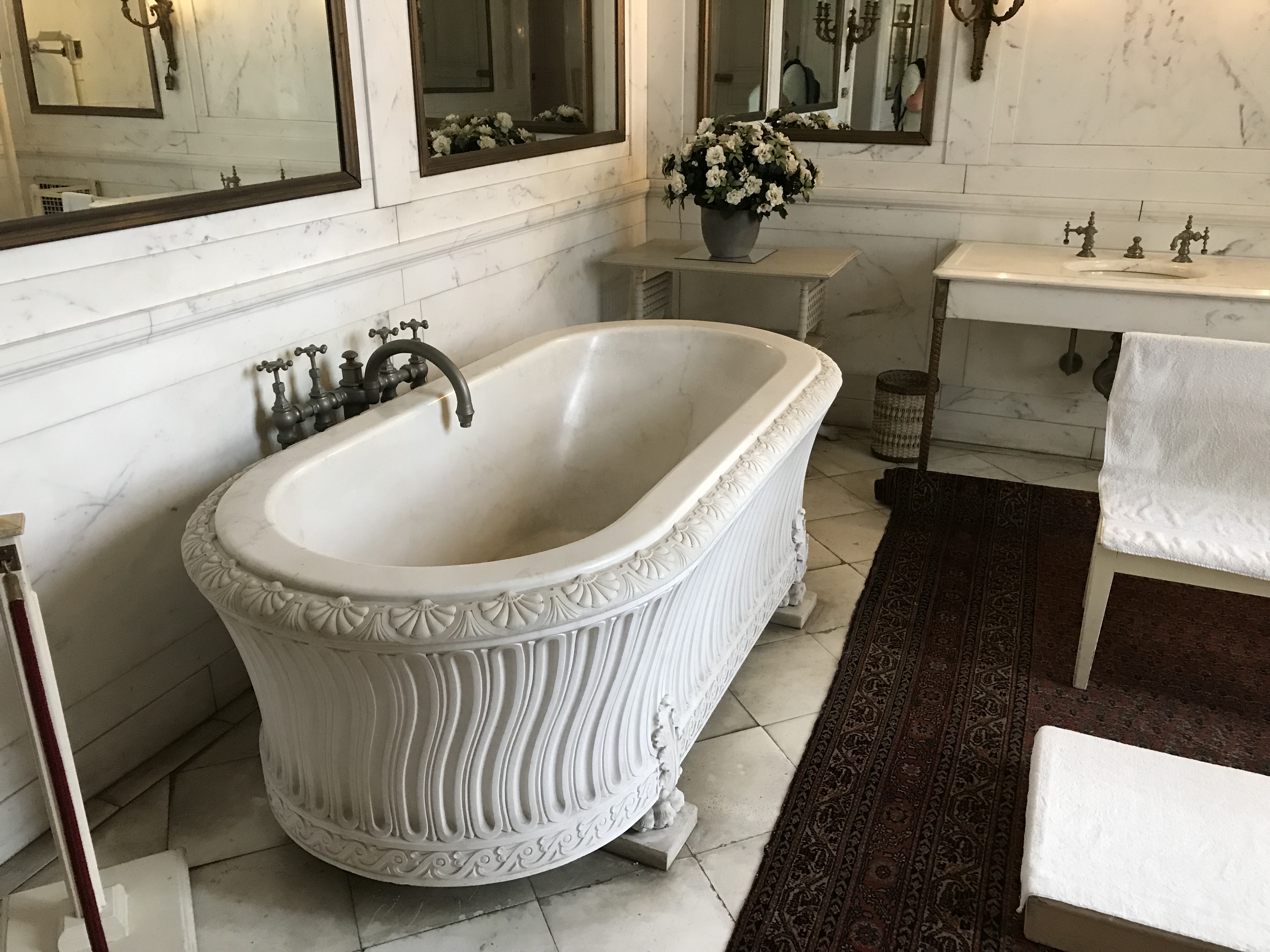 All of the room were ultra luxurious for the day. The beds were tiny. (above) The super modern kitchen and bathroom (below). Billiard table, angel lamp (Brandon) and a grandfather clock thrown in for good measure.